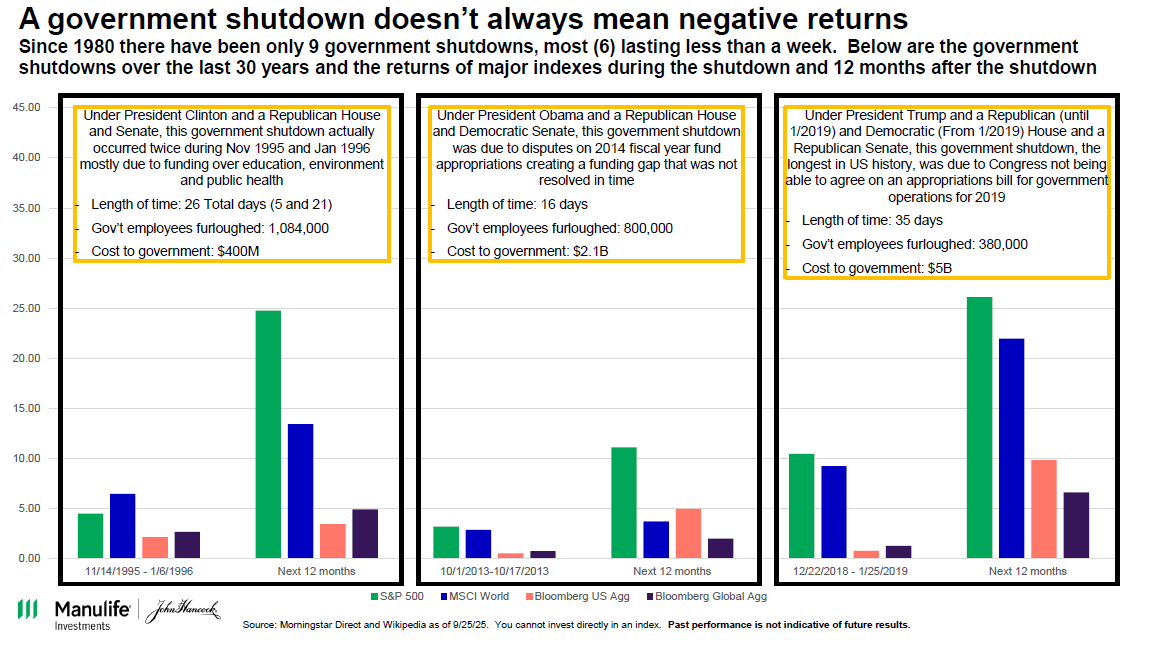 Importantly, the long-term impact has historically been limited. Once the government reopens, economic activity and spending generally catch up.